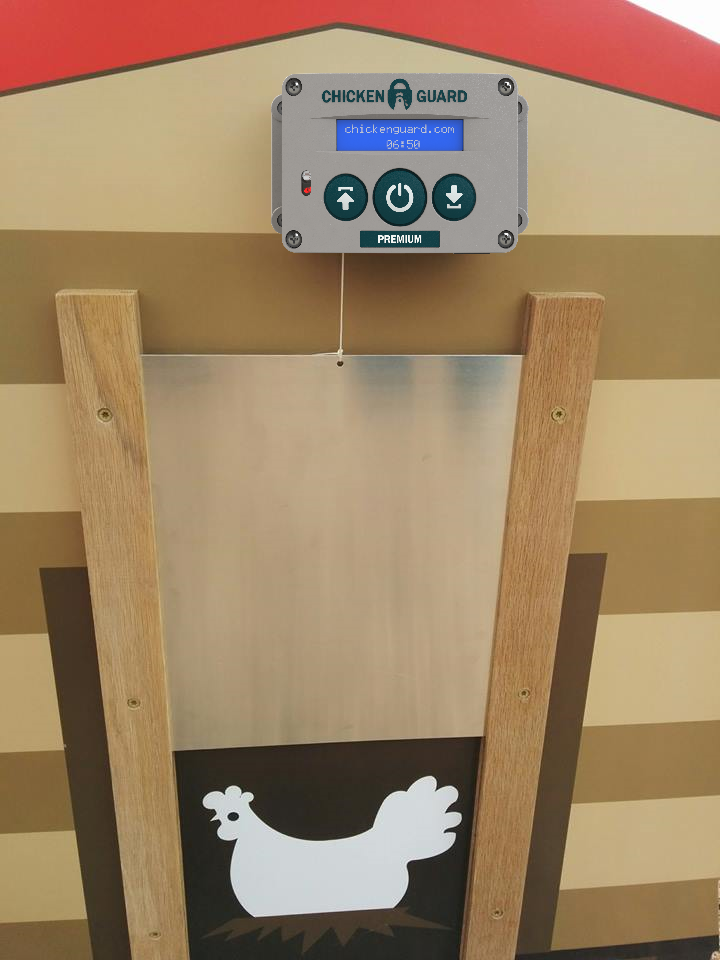 Chickenguard automatic chicken coop door opener.